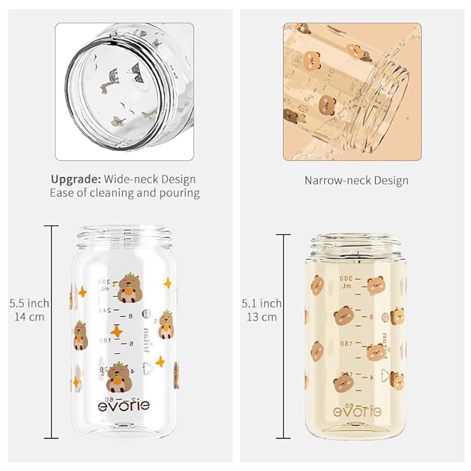 Evorie Tritan Spill Proof Toddler Straw Sippy Cup, 10 oz for Baby and Toddlers 1-3 Years Old, No Spill Straw Water Bottle with Removable Handles, Ideal for School, BPA-Free, Capybara (NEW)