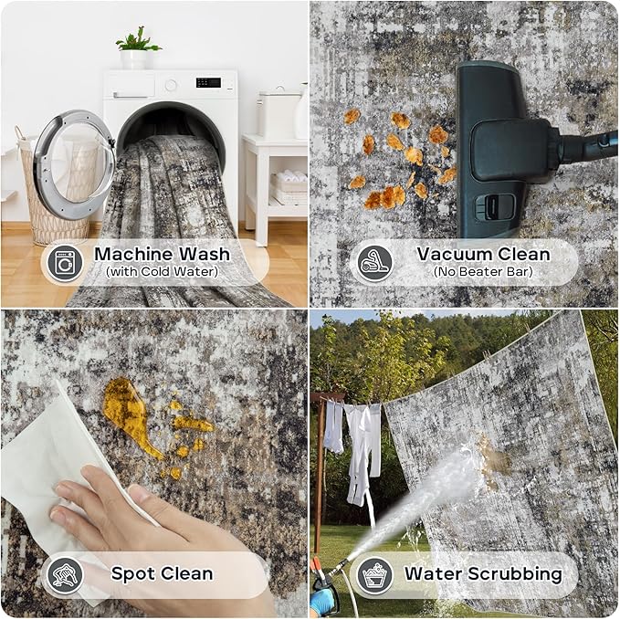 - Easy Maintenance: Keep your space fresh and clean with minimal effort. Our modern 5x7 area rugs are machine washable, spot-cleanable, and vacuum-friendly, making maintenance a breeze. Use a low-power vacuum regularly to remove dust or pet hair for everyday care. Avoid using bleach for best results