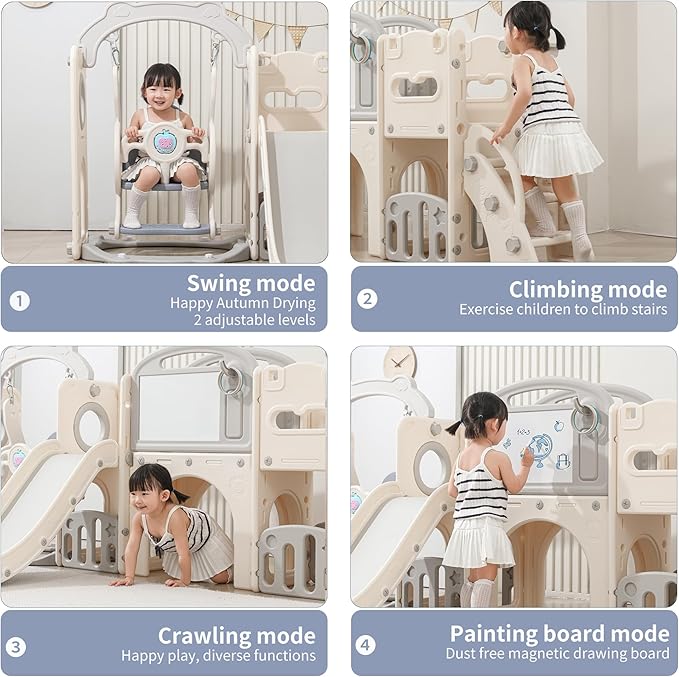 - 12 in 1 toddler playset with swing and slide set designed for toddlers ages 1-3 featuring durable ecofriendly materials perfect for indoor outdoor backyard playground use