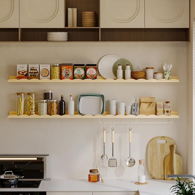 Fixwal Nursery Shelves, 24 Inch Floating Bookshelves for Wall Set of 4, Scalloped Wall Book Shelves with Towel Rack for Kids, Toddler Room, Baby Room, Nursery Decor and Storage(Natural Wood)