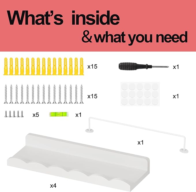 - 【Sturdy & Easy to Assemble】 - Easy to install in minutes with the installation manual. In addition, our wall shelves can hold up 20 lbs of weight when you install them firmly on the wall.