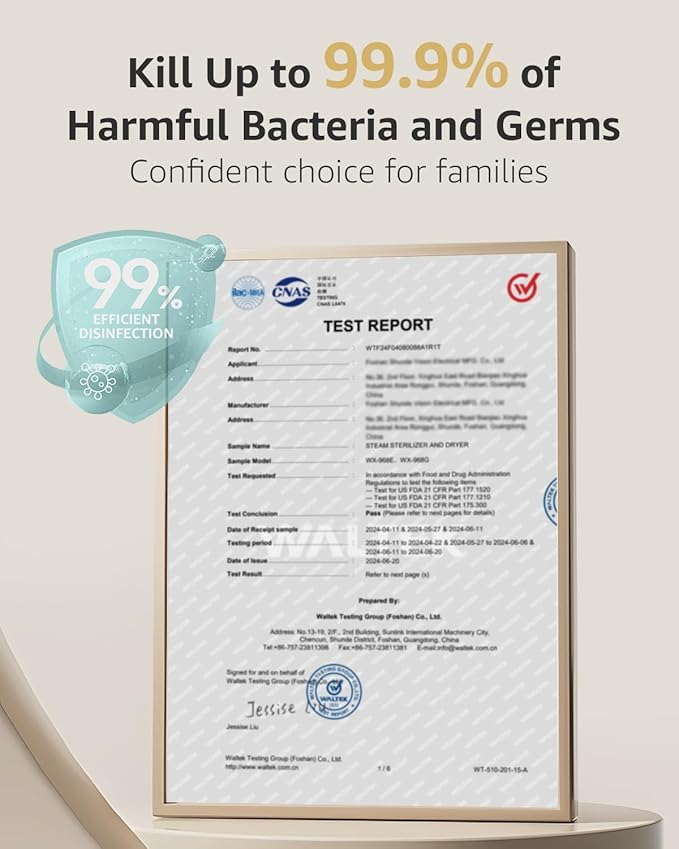 - 𝟵𝟵.𝟵𝟵% +𝙎𝙩𝙚𝙧𝙞𝙡𝙞𝙯𝙚𝙙: The bottle sanitizer uses 360° high-temperature natural steam to easilly achieve 99.99% steam sterilization, providing a safe and hygienic feeding environment for your baby.