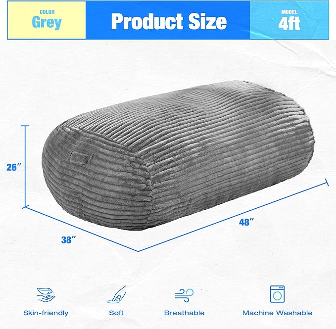 - Comfortable Fabric: Big bean bag chair for adults is made of stripe fabric that is soft and skin-friendly. The cover is removable and can be machine washed for easy cleaning. Once it's washed, the 4ft bean bag chair will revitalized, looking and feeling just like new again!