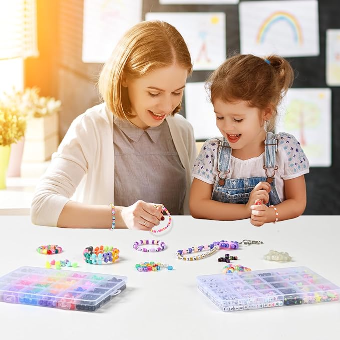 - Four-Colored Alphabet Letter Beads: This kit includes abundant square alphabet beads in four exciting colors—classic black & white, vibrant multicolor, and luminous glow-in-the-dark—perfectly complementing pony beads for customized, expressive jewelry designs