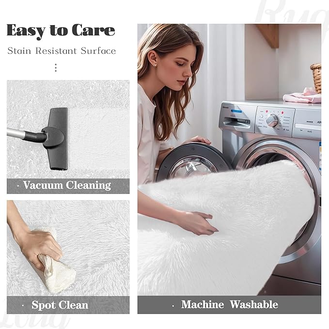 - MACHINE WASHABLE RUG: This shag rug 5x8 is designed for effortless care. This bedroom rug is machine washable for thorough cleaning, and itβs best to let it dry fully before using it again. For everyday maintenance, simply use a vacuum cleaner or spot clean as needed. It is easy to keep looking fresh with minimal effort.