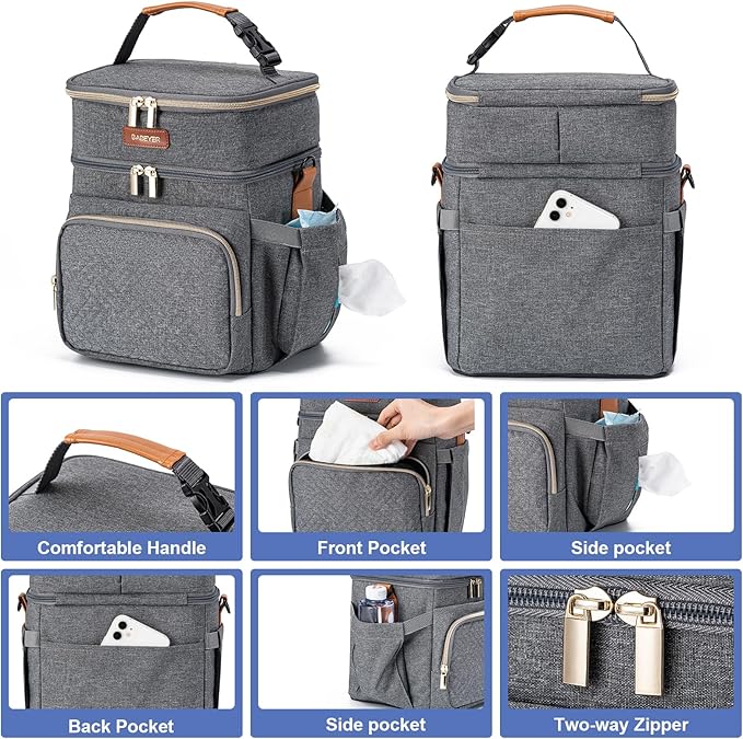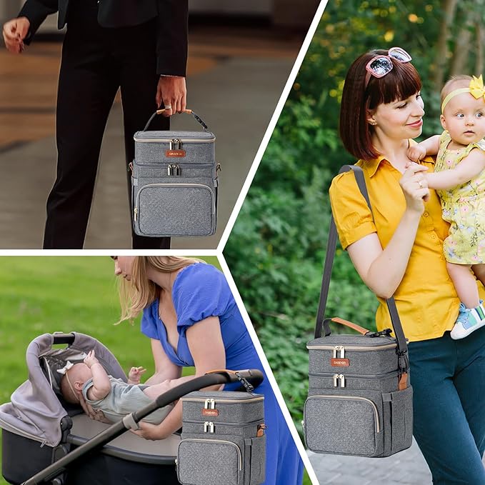 - Smart Double-Layer Organization & Versatile Use:Size of the breastmilk cooler bag is 9.2"D x 8.5"W x 11.2"H,maximize storage with dual compartments holding 6 bottles (9 oz each) and wearable pump or snacks. Perfect as a breastmilk cooler bag, daycare lunch box, or portable snack organizer. Keep essentials separated and secure for on-the-go convenience.