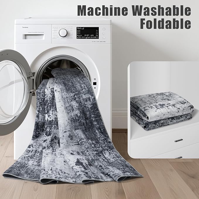 - Machine Washable Rug: Say goodbye to hidden dirt and cleaning hassles. The low soft pile of this 5x7 rug keeps most dirt on the surface, making it easy to clean with a carpet brush.The added bonus of it being machine washable makes it a breeze to maintain and saves you time. 6'x9 'and above are recommended to use nearby commercial laundry rooms