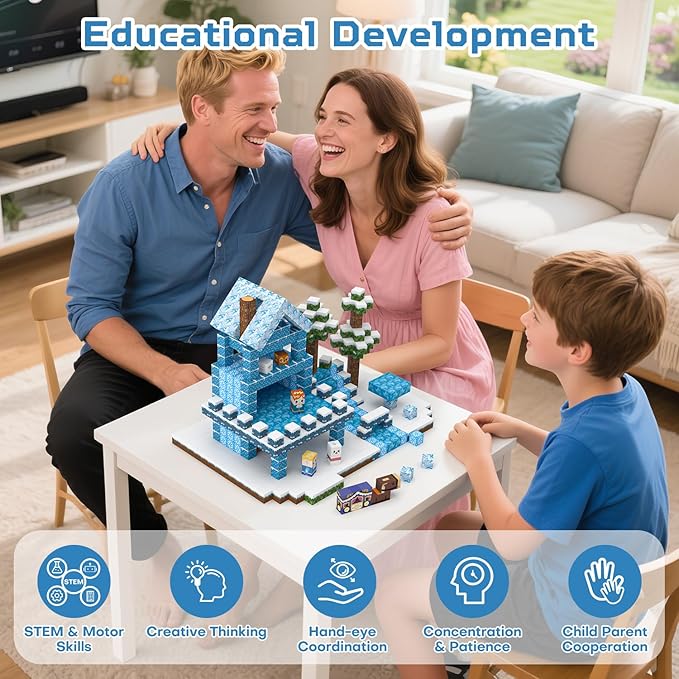 - Safe, Durable, Compatible Magnetic Blocks: Made with non-toxic materials and smooth edges, very safe for small hands of children over 3 years old. These washable, safety-certified magnetic cubes are built to last. Seamlessly connect with other magnetic tile sets to build expansive snowy scenes, or entirely new worlds