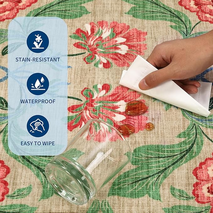 - 【floral Botanical Design】Inspired by floral fabrics, this botanical design features vivid, mirrored big floral motifs that attract the sweetest hummingbirds in a garden-like setting. Petals in bright yellow, lavender, pink, and red bloom beautifully against diffrent background. Water-resistant, stain-resistant, and machine-washable. Rug colors may vary slightly according to your device and the lighting in your space
