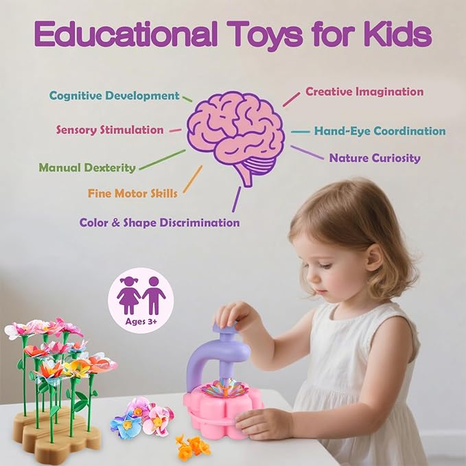 - 🛡️【Safe, Durable, and Ready to Play】 Made with ASTM-certified non-toxic plastic, all materials comply with US CPSIA safety standards. Sturdy stems and reusable petals withstand hours of play, while the flowers market toy is frustration-free for 4-8 years old. Let creativity bloom worry-free!