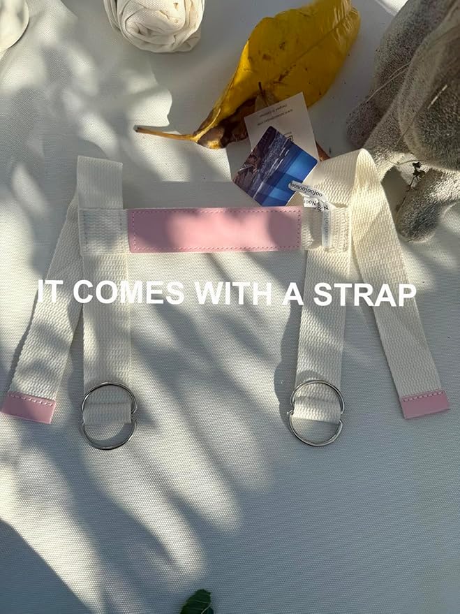 - Includes: 1 white canvas mat, faux leather handle, and webbing strap