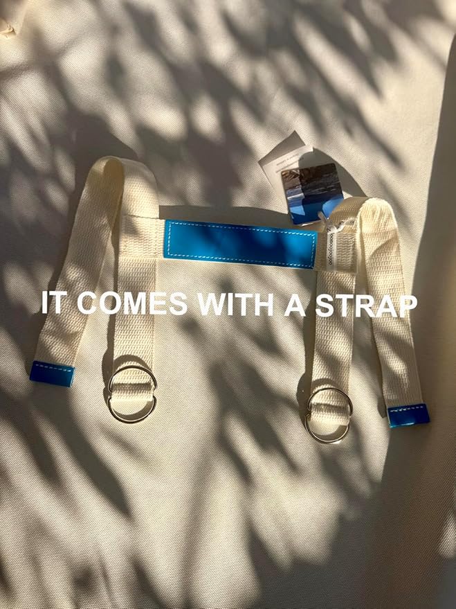 - Includes: 1 white canvas mat, faux leather handle, and webbing strap