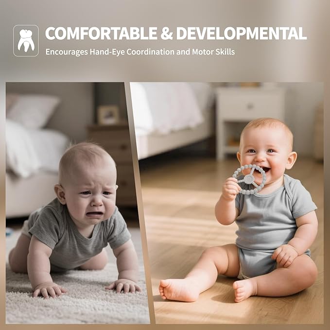 - Safe & Teething Relief Toys for Babies: Our food-grade silicone teething rings for babies 3-6 months are BPA-free, non-toxic, hypoallergenic and CPC-compliant. These teething toys offer soothing gum relief, are comfortable teethers for babies 6-12m.