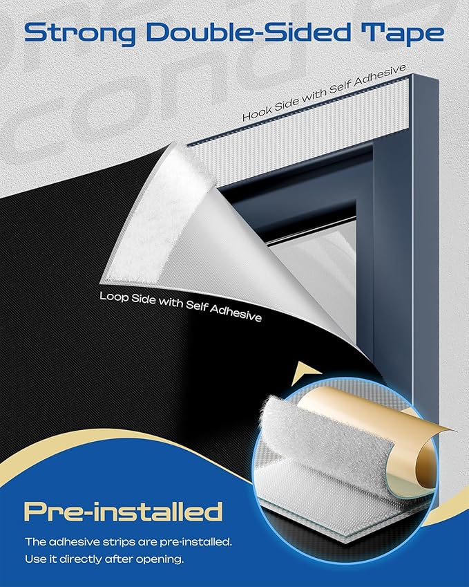- Upgraded Hook & Loop Installation - Featuring industrial-grade Hook & Loop tape, no drilling or professional tools are needed. Simply fix the patches on the window frame (suitable for both flat and curved surfaces), align the window curtains, and press to complete the installation in just a few minutes. For creases, iron at 120ββ150β with a cloth to maintain the durability of the fabric and fastener