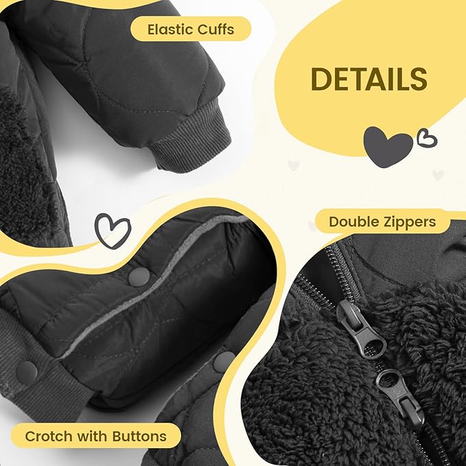 - [๐ปThoughtful Design]: JiAmy snowsuit toddler wear features a front zipper with crotch snaps for swift diaper changes and easy dressing, Fleece lined pockets to keep tiny hands cozy, and ribbed cuffs that lock out drafts while securing sleeves, making these baby winter clothes the practical choice for active kids.