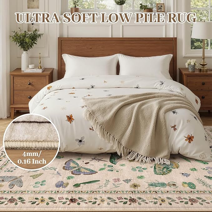 - Nature-Inspired Artistic Decor: Featuring intricate insect and botanical patterns, this 5x7 Rug adds unique natural charm to any room. Its slim profile easily slides under furniture, making it versatile for bedrooms, nurseries, or entryways