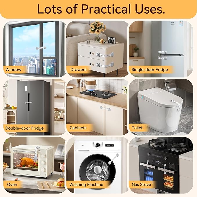 - Versatile Use β Fits Most Cabinets & Appliances: Works on cabinets, drawers, fridges, ovens, toilets, and more ! The keeping kids away from trash cans, medicine cabinets, and dangerous appliances .