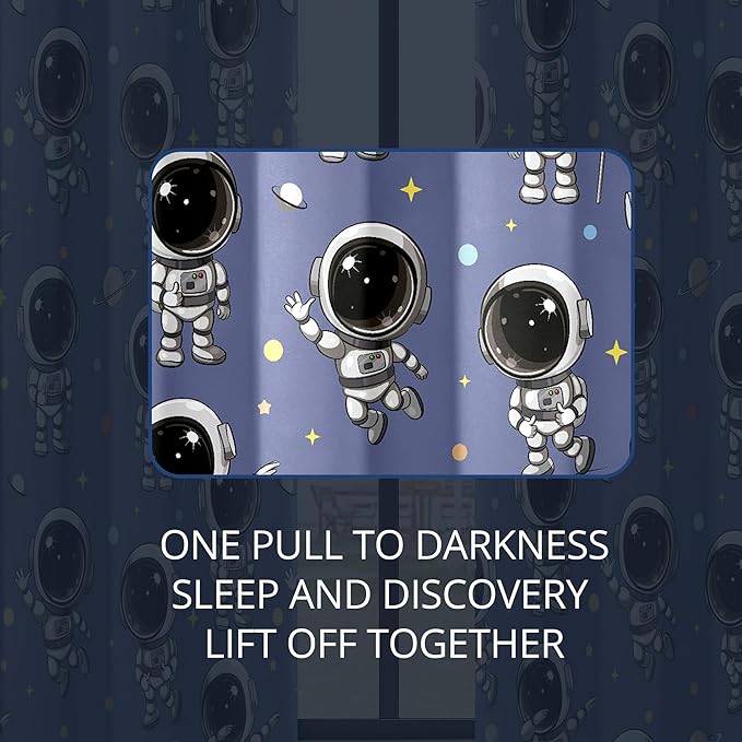 Kids Astronaut Blackout Curtains - 100% Blackout, Thermal Insulated, Noise Reducing, Perfect for Kids Room and Nursery, 2 Panels (Spacewalk Buddies, W52×L84)