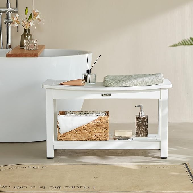 - 【Plus size & Adjustable Feet】Larger size: 30*13 inches, which can bear more load (Weight capacity is about 700LBS), double-layer super large space, Water Resistant & Non-fade:The shower seat has strong water resistance, can be safely washed with water, and is made of 100% polystyrene material, without using any paint, so it will never fade. It adds 4 adjustable rubber feets which can protect your floor to scratch.