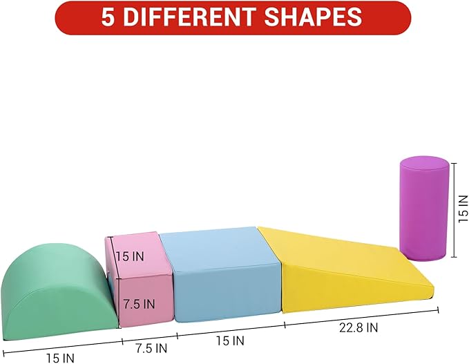 - 6-Piece Set: Includes a triangle, large cuboid, small cuboid, half moon, wedge and cylinder. Designed for ages 1โ3, this climbing toy sparks imagination with endless configurations, letting kids enjoy climbing, stacking, and rearranging shapes.