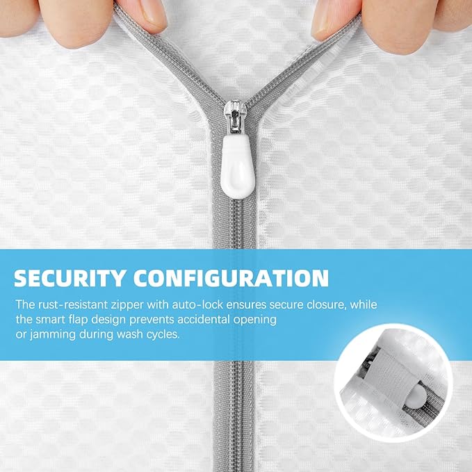 - 【Premium Anti-Rust Zippers with Auto-Lock Technology】 Features rust-proof #5 zippers with smart locking mechanism and elastic guards to prevent openings during wash cycles - enjoy quiet, tangle-free laundry every time. Please do not put in too much laundry. Keep the capacity around 2/3 for smoother washing.
