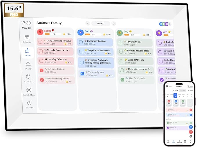 15.6" Digital Calendar Wall Planner,Touchscreen Interactive Display for Family Schedules, Achievement Rewards, Meal Planning,Digital Picture Frame, FHD 1080p Wall-Mountable Home Hub