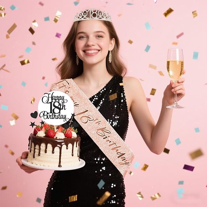 - 18th Rhinestone Crown & Sparkly Sash: The birthday sash, made of soft fabric via hot-press stamping glitter technique, features superior quality with non-shedding glitter and rose gold it's my 18 birthday letters. The crown, crafted from sturdy hard alloy with dazzling rhinestones, is meticulously designed for 18th birthday parties.