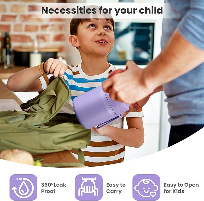- Leak-Proof Design: Featuring an upgraded double-layer silicone seal that provides a 360Β° leak-proof guarantee. Rest assured that our leak-proof thermo food jar can fit in your lunch bag without worrying about spills. The insulated thermal food jar comes with a stainless steel spoon for your child's convenience.