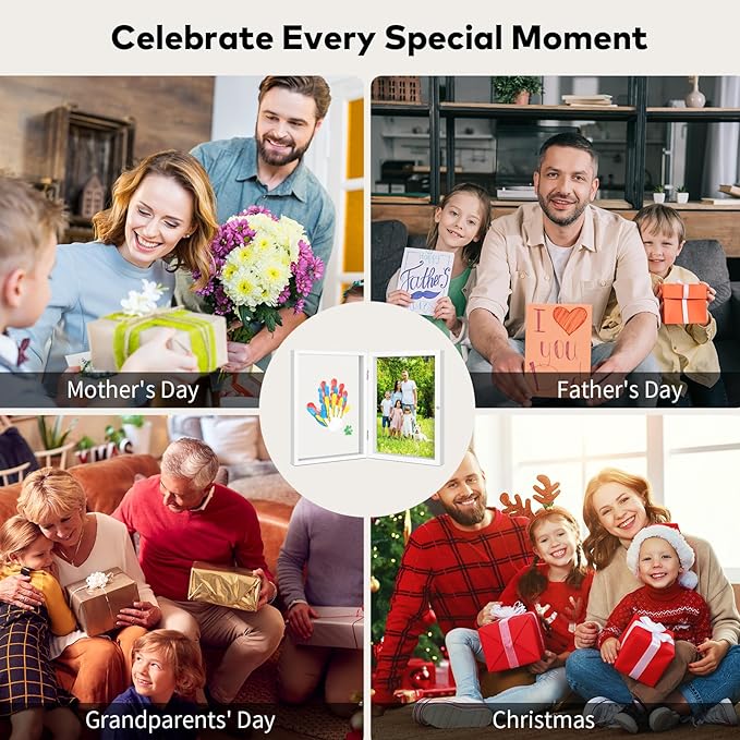 - EVERLASTING FAMILY TIME CAPSULE: Capture the fleeting moments of your child's growth in timeless elegance–each handprint tells a story that grows more precious as the years pass. Create your own artwork for your home with our lovely family handprint kit. Use the paints to print your hands on the insert, then display in the frame included