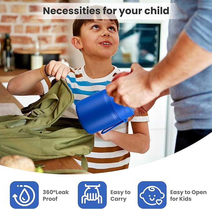 - Leak-Proof Design: Featuring an upgraded double-layer silicone seal that provides a 360Β° leak-proof guarantee. Rest assured that our leak-proof thermo food jar can fit in your lunch bag without worrying about spills. The insulated thermal food jar comes with a stainless steel spoon for your child's convenience.